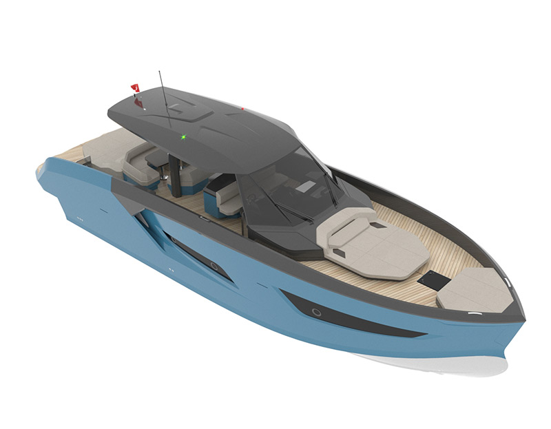 The Soft Top variant adds an extra layer of comfort to the Blue Cosmo 52 line, featuring a stylish roof structure that provides essential shade to the main deck while keeping you connected to the surroundings. Perfect for sunny days and breezy evenings, this design marries the shelter of a hard canopy with the exhilarating freedom of an open cruiser.